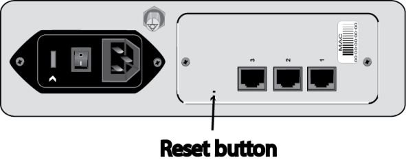 - Locate the Reset button or pin on your Digi device. Here is the reset button for a Digi Connect SP unit.