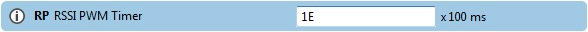 RP value is expressed in hexadecimal notation. For example, a configured value of 0x1E is equivalent to 30 in decimal and means that the pin will be active for three seconds (30*100=3000ms.) So the LED will light for a total of three seconds, representing the last RSSI value.