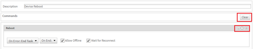 Each command you add to the schedule appears in an individual dialog in the task pane. You can use the icons in the task dialog toolbar to collapse or expand the dialog, delete the task, or display a description of the task type.