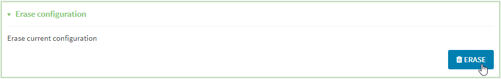 You can erase the device configuration in the WebUI, at the command line, or by using the RESET button on the device. Erasing the device configuration performs the following actions: