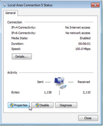 1. Select the Properties of the relevant network connection on the Windows PC.