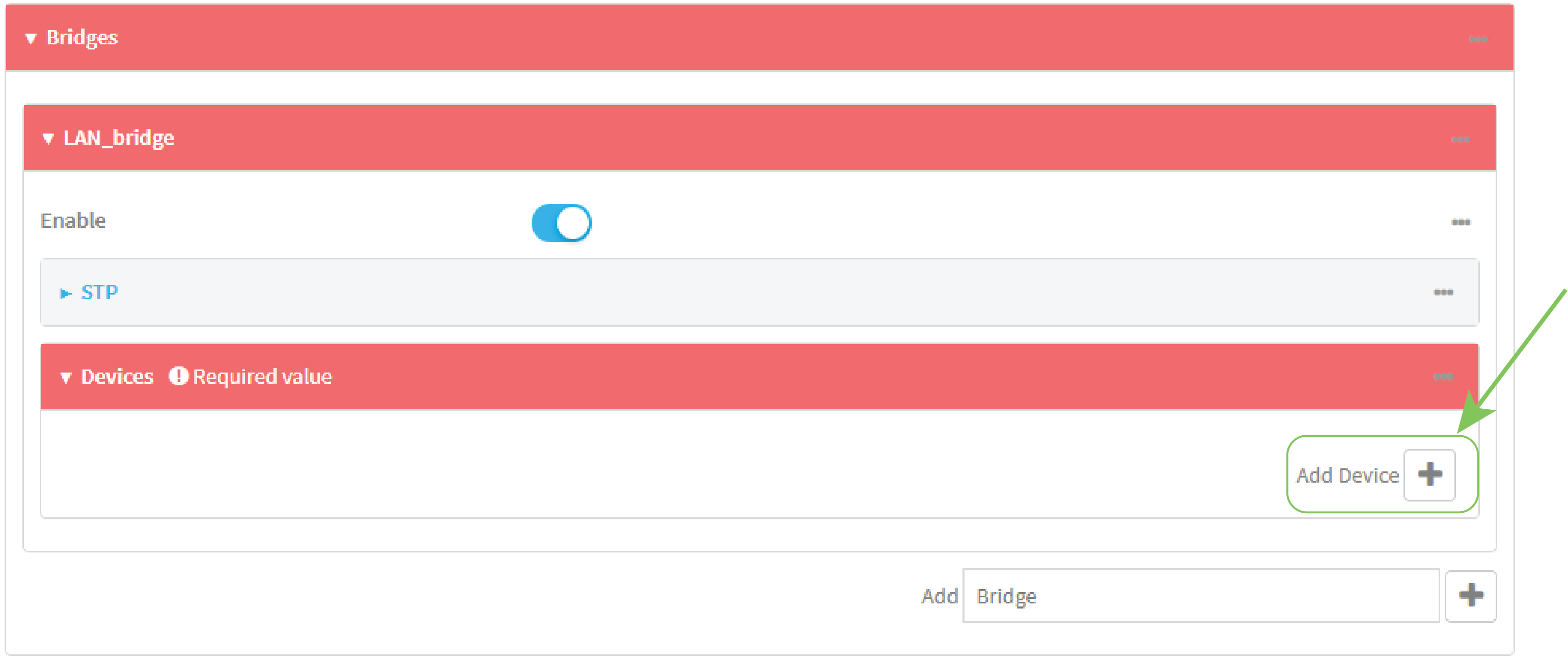 6. Click Add Device again and select an additional Ethernet port or access point to add to the bridge.
