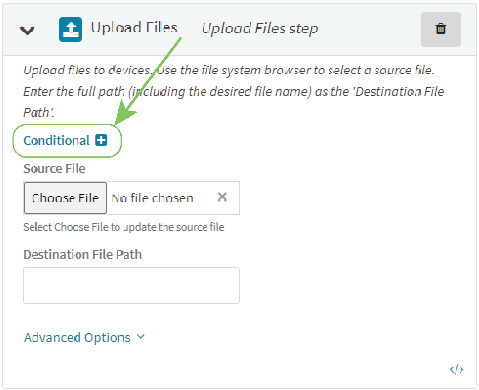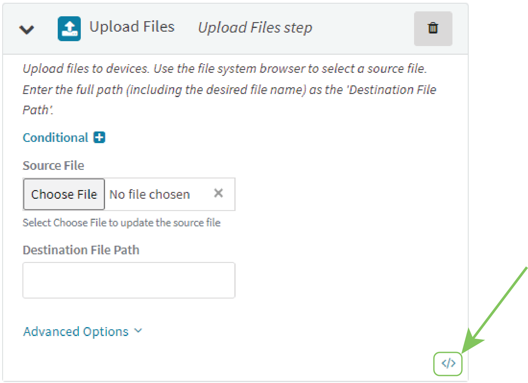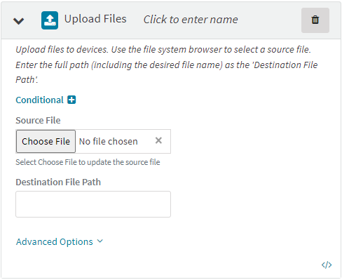 4. For Destination File Path, type the path and filename on the device where the file should be uploaded to.