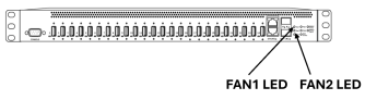 The FAN1 and FAN2 LEDs on the front of the Hub show the status of the CPU fans.