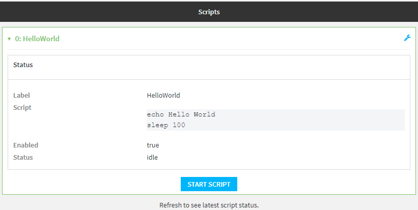 2. For scripts that are enabled and configured to have a run mode of Manual, click Start Script to start the script.
