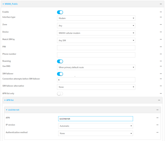 To accomplish this, we will create separate WWAN interfaces that use the same modem but use different APNs, and then use routing roles to forward traffic to the appropriate WWAN interface.