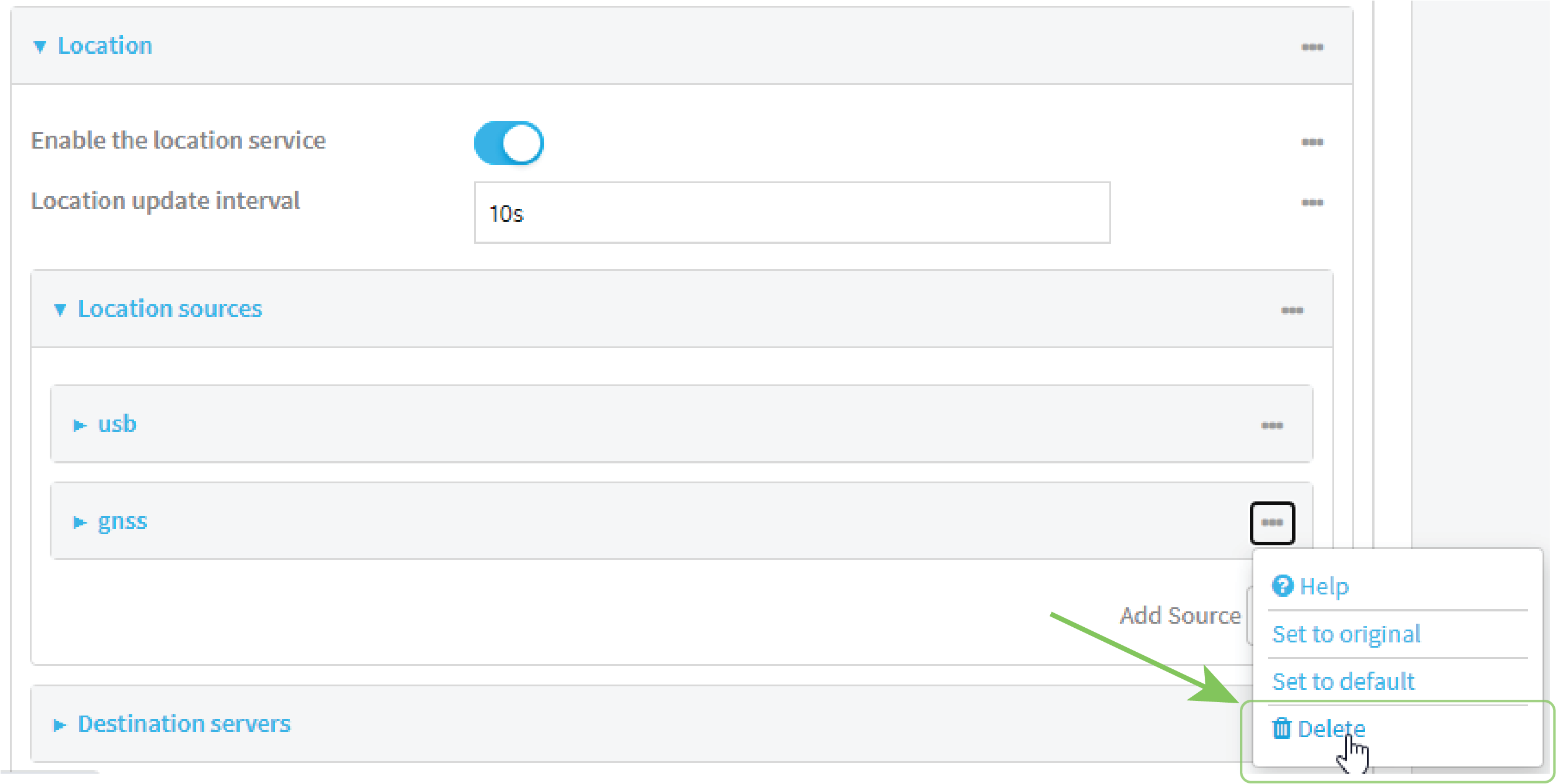 7. Alternatively, you can also delete the gnss location source: