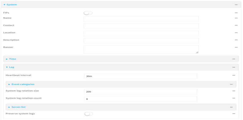 To change or disable the heartbeat interval, or to disable event categories, and to perform other log configuration: