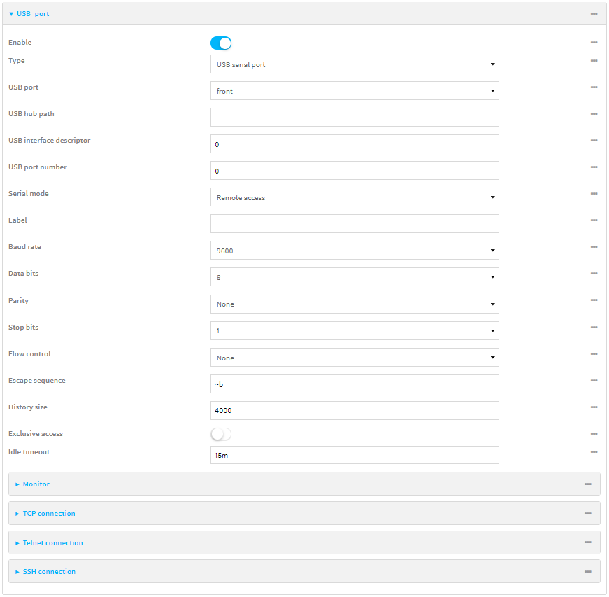 Your TX64-Rail can be configured to support USB-to-serial adapters for serial access to the device, or remote serial out-of-band (OOB) access to other devices, and for use in python applications. The following USB-to-serial chipsets are supported: