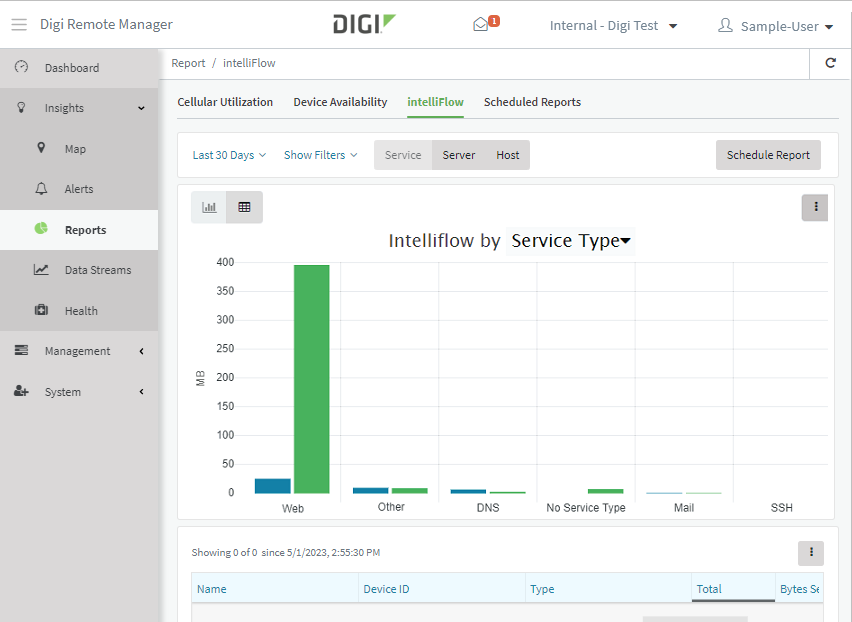 Digi intelliFlow is a reporting and graphical presentation tool for visualizing your network’s data usage and network traffic information.