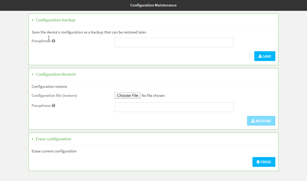Do not set a Passphrase for the configuration backup. The file will be downloaded using your browser's standard download process.