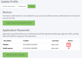 Click the Delete app password icon in the Actions column for the password that you want to delete. A confirmation dialog displays.