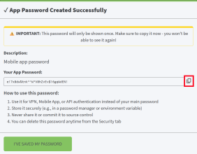 Click the Copy to Clipboard icon next to the Your App Password field. This saves the password to your mobile device's clipboard.