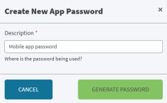 Click Generate Password. The password is generated and the app password dialog displays.
