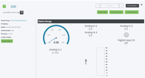 Demo Configuration: This is the default configuration, and displays basic information in the Device Summary page: Analog in Voltage, Digital in, and Case temperature.