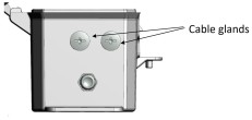 - Remove the plug from the cable gland connectors on the side of the device.