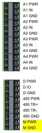 - Use a slot-headed 0.4x2.5x80 mm screwdriver to loosen the screws for the following pins: M GND and M PWR. The correct pins are highlighted in the graphic below.