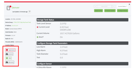 The location status information is a set of metrics tracked by the firmware and displays in the asset list.