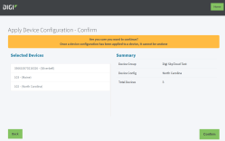 Click Next. The Apply Device Configuration - Confirm page displays, showing the device to which the configuration will be applied, and information about the configuration.