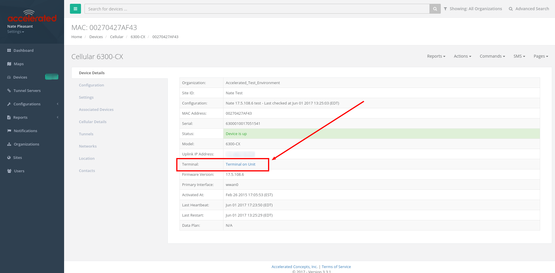 Note The Terminal on Unit access leverages the management tunnel established between the 63xx-series router and aView. For details on the monthly data usage for this access, see Data usage estimates.