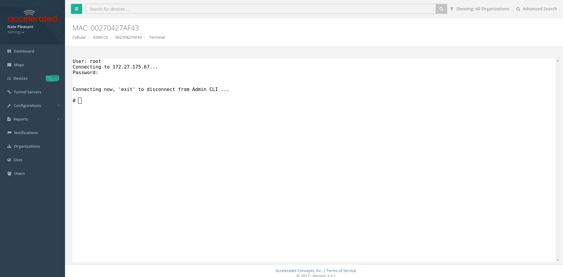Once the correct management IP is reported from the device to aView, click the Terminal on Unit to open a page on aView that provides access to the device console.